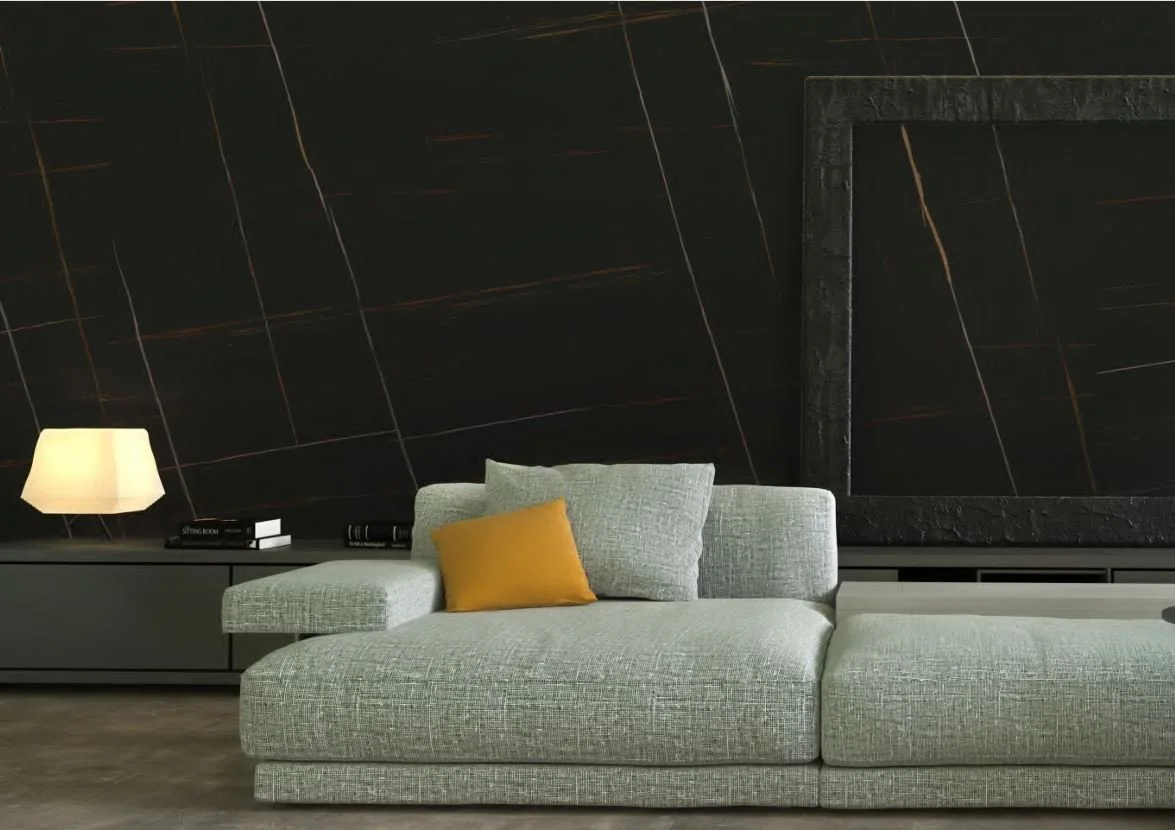 SAHARA NOIR 9MM X 47” X 118”Matt FinishLarge-format porcelain slab for floors, walls and countertop surfaces.