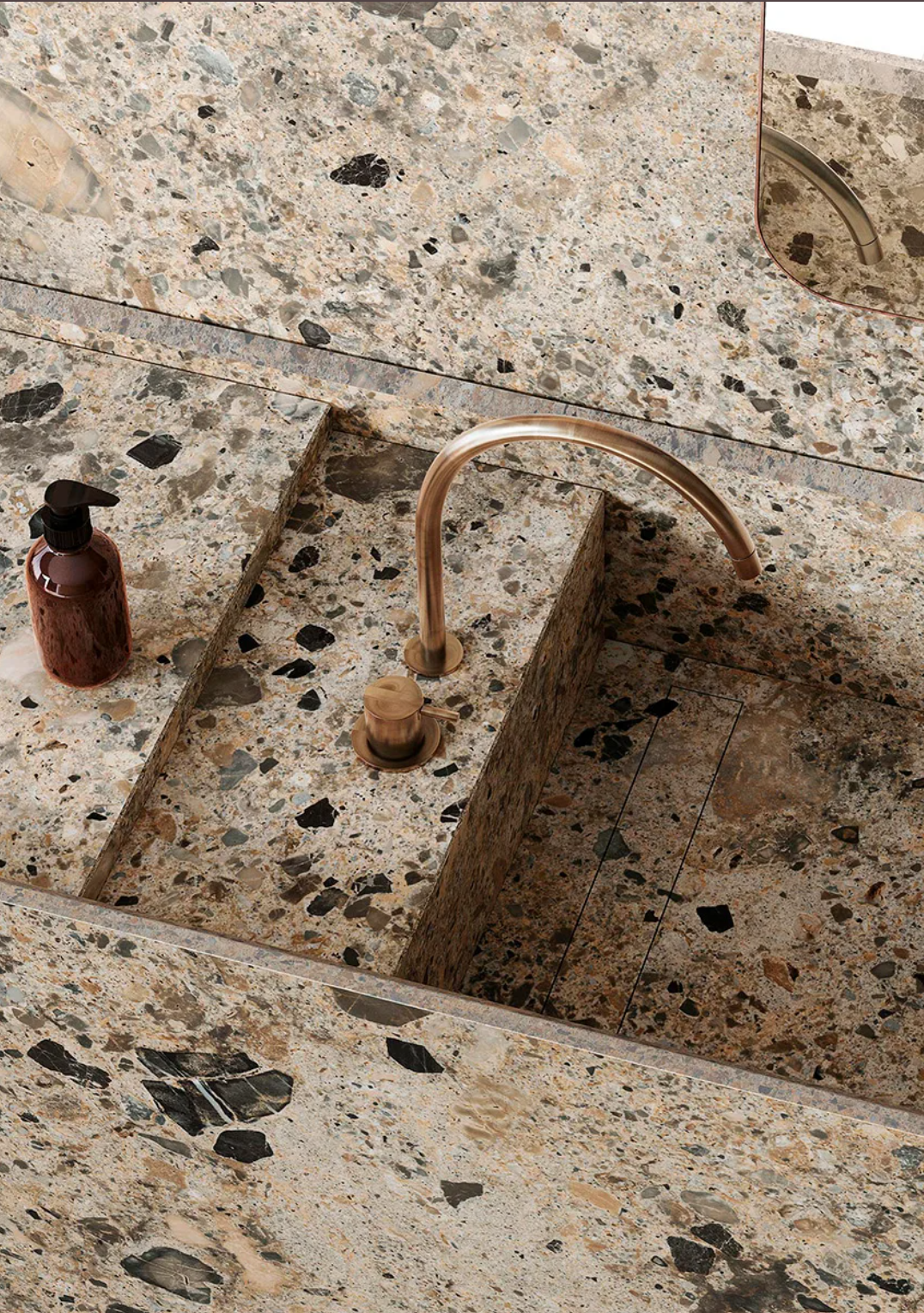 Ceppo Romano is inspired by the historic Italian stone widely used in modern architecture. Its irregular texture, enriched with pebble inclusions and mineral veining, delivers a uniquely refined visual strength. Ceppo Romano is ideal for projects that celebrate authenticity and material richness.